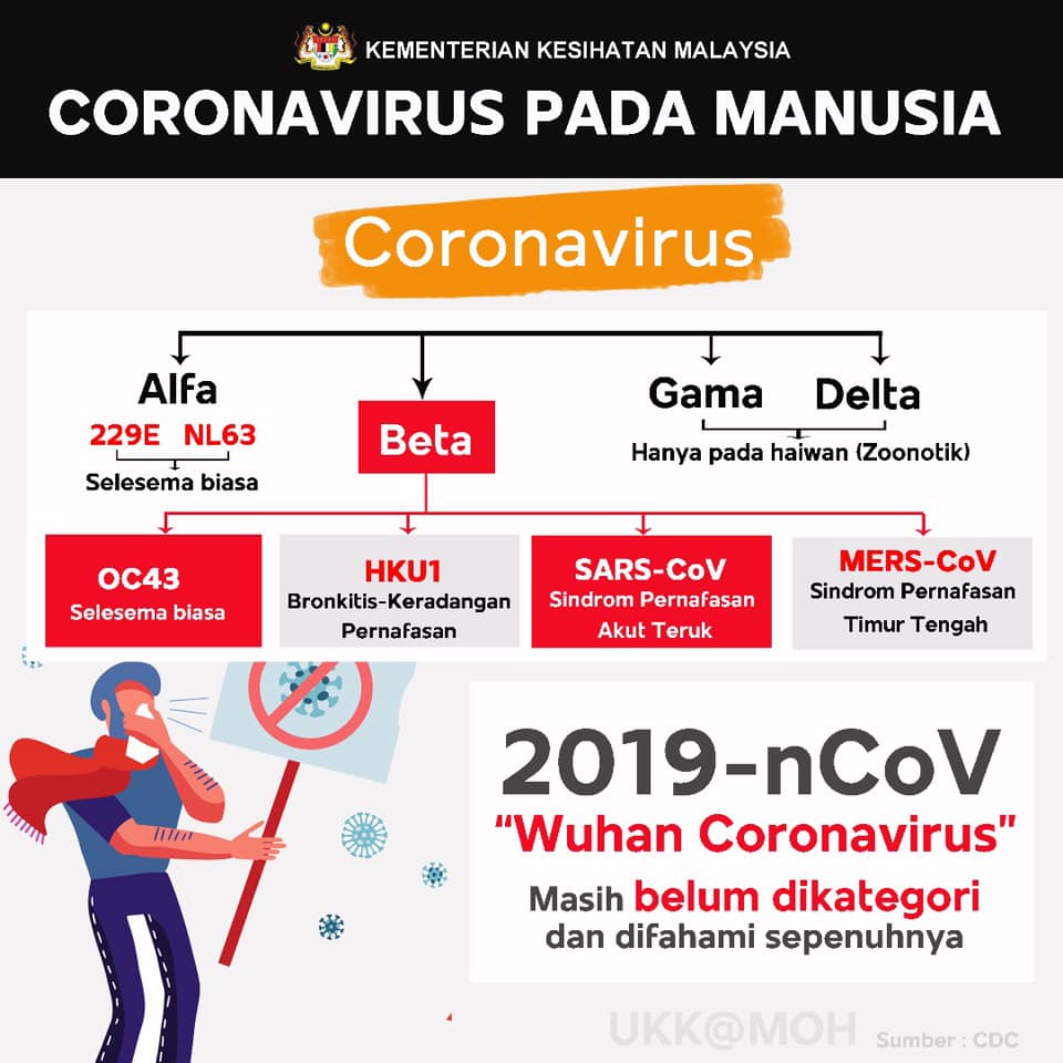 Disini saya lampirkan maklumat infografik dari Kementerian Kesihatan Malaysia bagi mencegah penyakit Koronavirus pada rakyat Malaysia. KKM menghasilkan maklumat dalam bentuk infografik supaya lebih mudah difahami. Anda juga boleh klik terus ke laman web Kementerian Kesihatan Malaysia di sini.